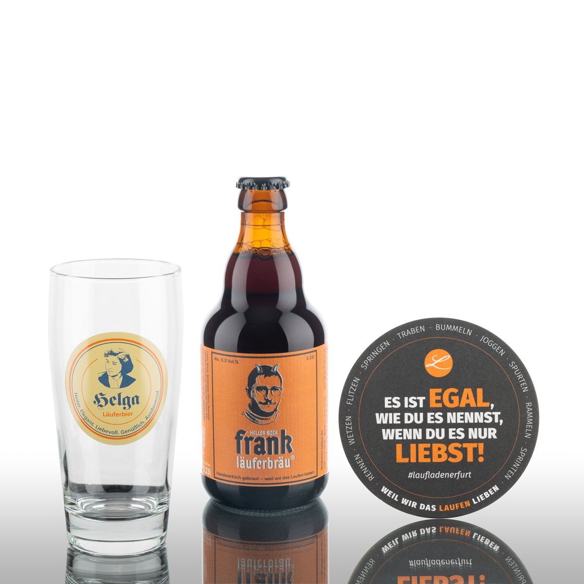 Frank Lehmann. Geboren 1962 im grünen Herzen Deutschlands. Die friedliche Revolution 1989 erlebt. Bergreisender, Politikinteressierter, Vorreiter der alpinen Bergläufer und Traditionsläufer beim Rennsteiglauf. Vor allem aber Visionär mit dem im August 1992 gegründeten Laufladen Erfurt. Ansprechpartner für alle Anliegen von blau gewachsten Ski der engadiner Loipen bis zu den großen Marathons in Berlin, Interlaken oder auch Medoc. Immer dabei war auch der Blick für das Erlebnis und den Genuss abseits des Mainstreams. Gutes Essen mit der Laufreise auf schweizer Almen oder handgemachtes Bier vom Lemke am Aleanderplatz. Grund genug für uns, Frank mit einer ganz besonderen Reminiszenz zum 30-Jährigen Laufladen Erfurt Jubiläum zu würdigen. Regionale Zutaten, feminine Handwerkskunst durch Braumeisterin Isabella und maskuline Arbeit unserer Brauer Reinhard und Boris ergeben einen dunklen Bock. Dieses Bier steht als synonym für den Erfinder und die Säule N°1 im Laufladen Erfurt: FRANK – Dunkler Bock.